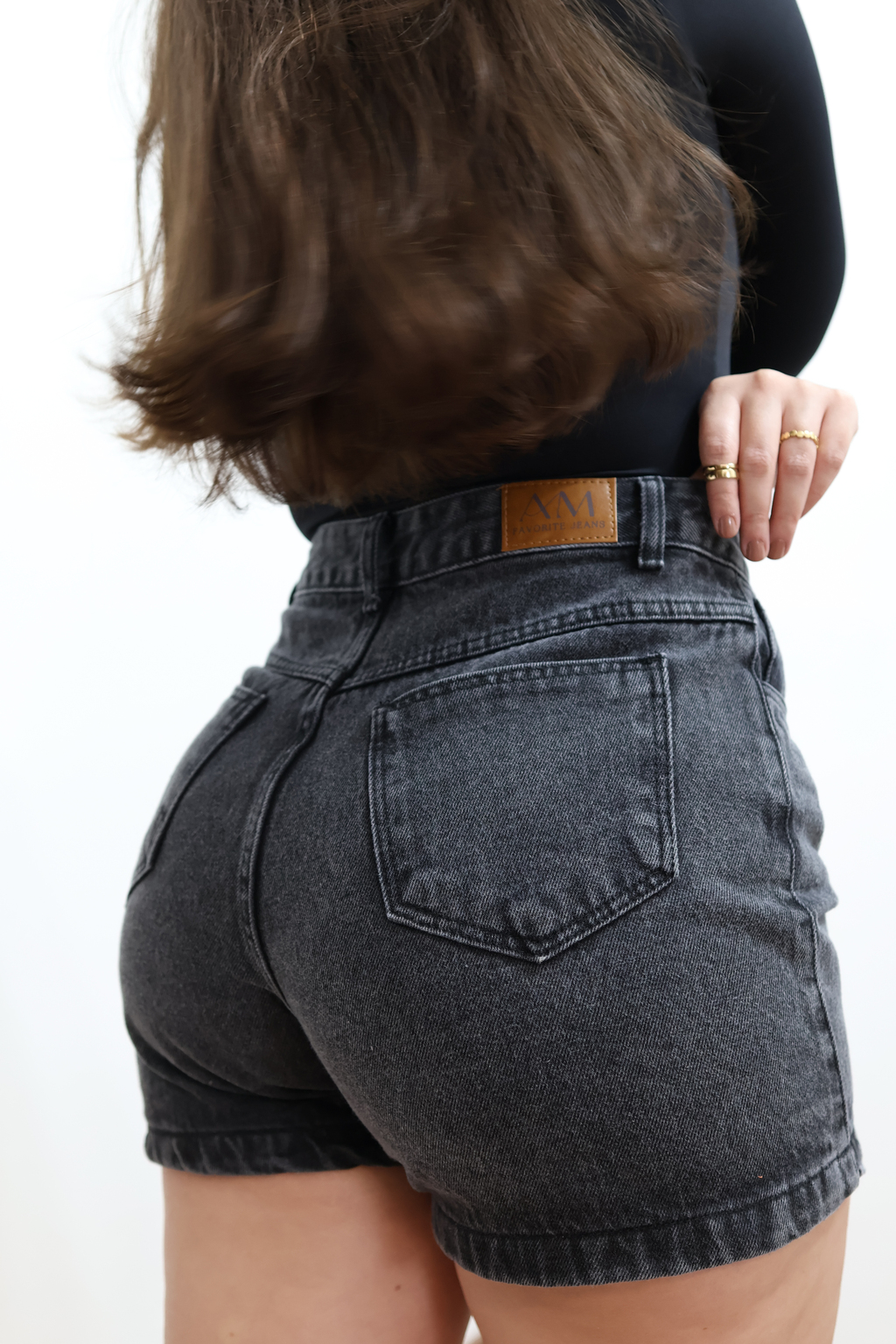 Short jeans em lavagem preta marmorizada, muito confortável e versátil. Peça atemporal que temos que ter no armário! Modelo da nossa confecção própria, onde pensamos em cada detalhe da modelagem, com muito amor, para te vestir da melhor forma! :)